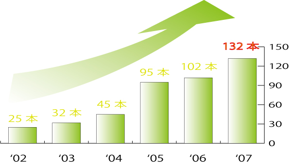 お蔭様で設立より順調に売り上げを伸ばし、3m以上の大木、人工樹木の施工量では全国一位の施工数を記録。あまりの急成長に税務署も来ました(笑)もちろん是認で終わりベテランの税務署員に「エーエスグリーンは伸びる。わしが今まで伸びると思った所の九割は当たってる」とうれしいお言葉を頂きました。しかし一割に入らないようにがんばります。
